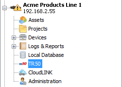 对于某些产品,在安装基础软件时会附带安装 TR50 功能。对于其他产品,则使用 Administration(帐户管理)> Packages(软件包)选项卡添加 TR50 功能。当 TR50 功能可用于节点时,将显示 TR50 图标: