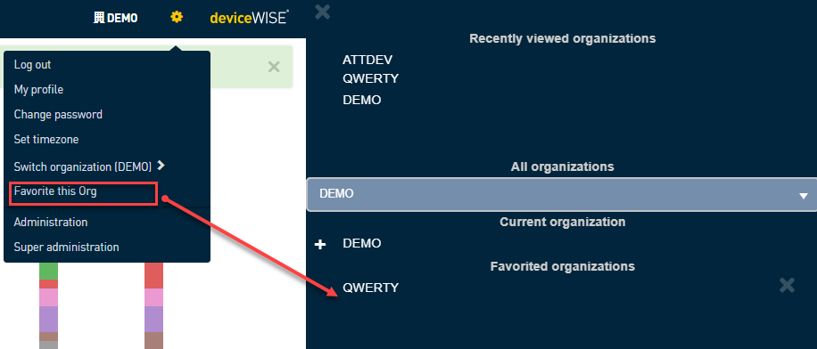 您选择的帐户将移动到 Favorited organization(收藏帐户)下的侧滑面板,并允许您快速切换帐户。